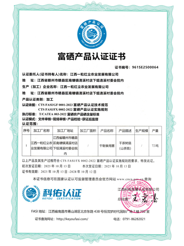 江西一粒紅塵農業(yè)發(fā)展有限公司是一家總部位于江西省贛縣的現代農業(yè)多元型企業(yè),專注于食用菌的研發(fā)、種植、深加工、貿易、研教培、農文旅等全產業(yè)鏈發(fā)展。公司秉承“健康、綠色、共享、共贏”的核心價值觀,致力于引領鄉(xiāng)村振興之路,旨在成為......